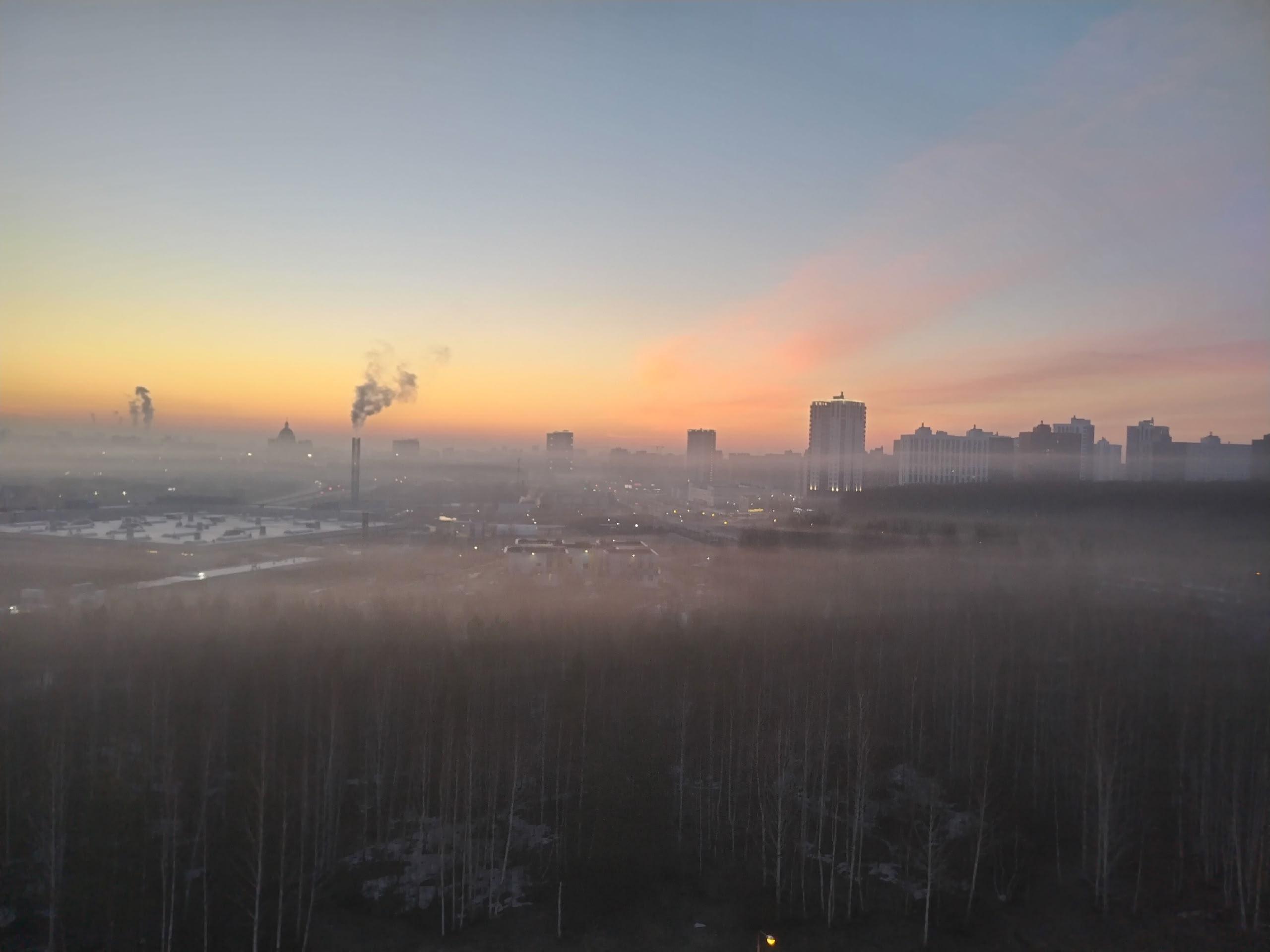 Утренний восход солнца был скрыт дымкой, лишив горожан привычных красок.