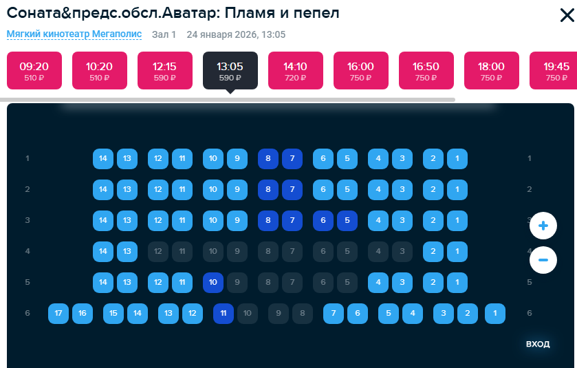 Новый блокбастер Джеймса Кэмерона «Аватар. Пламя и пепел» (16+) демонстрируется в кинотеатрах Челябинска по повышенным ценам, которые в некоторых случаях превышают 1000 рублей за билет. Несмотря на стоимость, зрители активно приобретают места, особенно на сеансы в субботу и воскресенье.