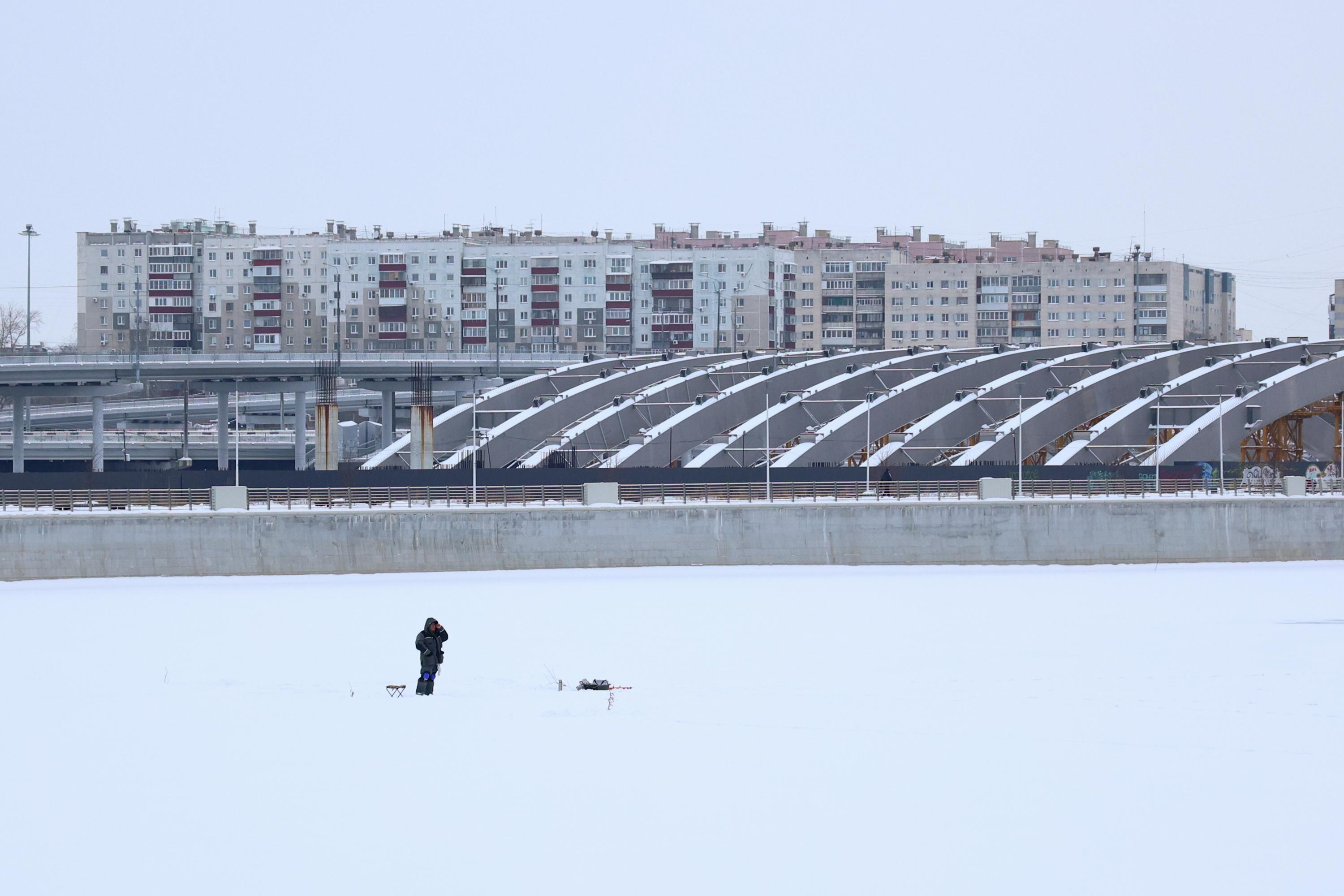 Самые отважные с утра решаются выйти на непрочный лёд реки Миасс