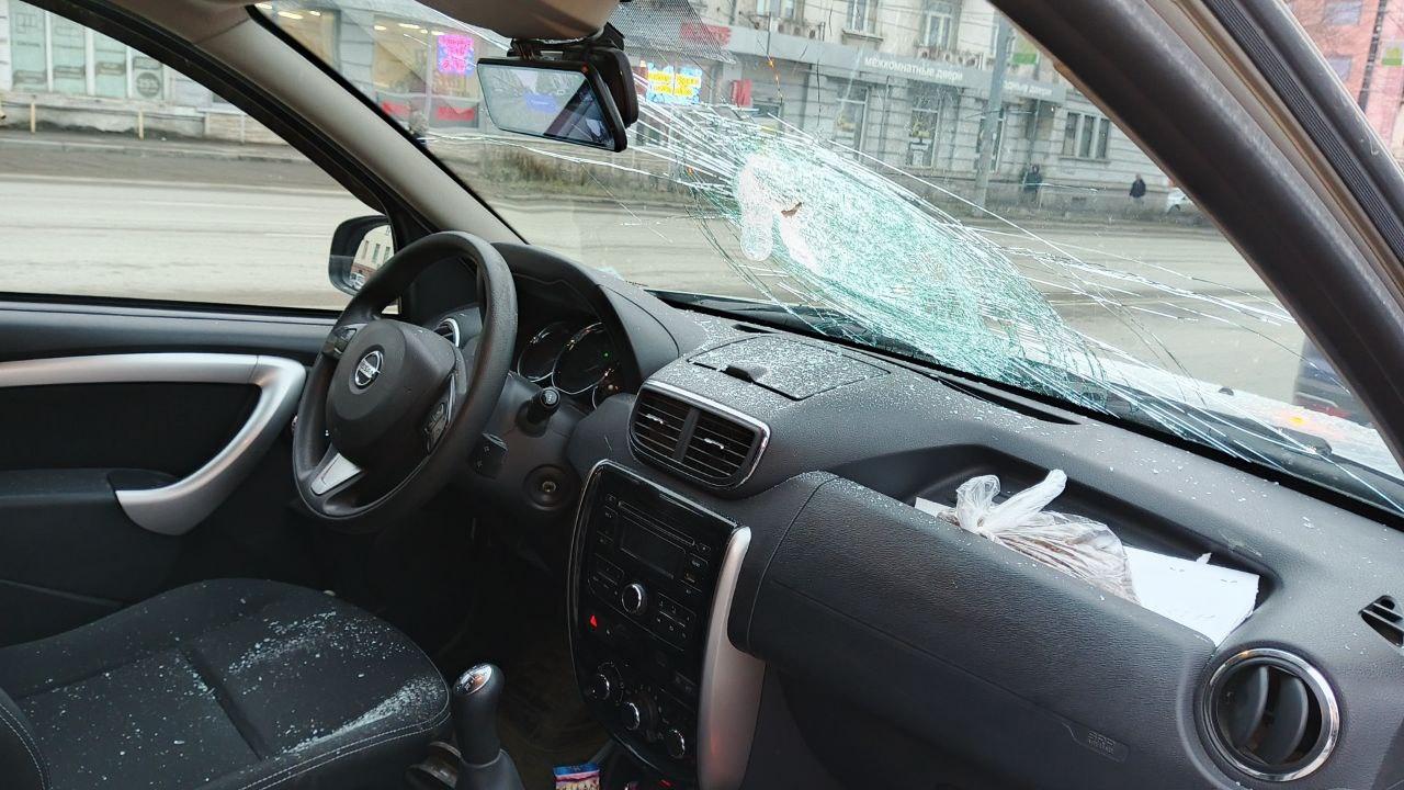 «У троллейбуса № 12 сошли токоприемники, и графитовая вставка, зацепившись за провод, как из катапульты, попала в лобовое стекло автомобиля, пробив стекло и попала в салон. Женщина-водитель чудом не пострадала», — сообщил читатель Сергей.