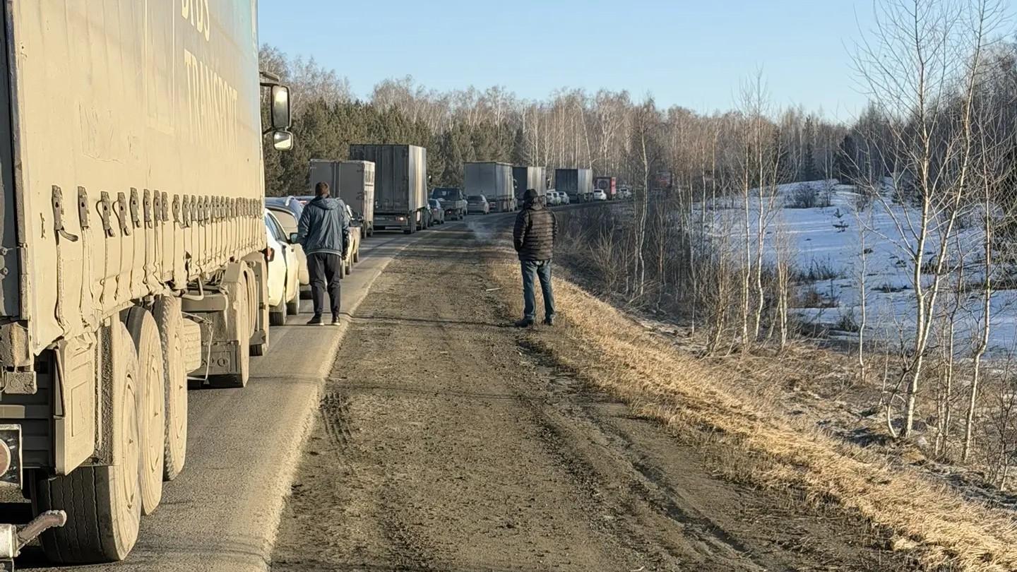 «Пробка большая перед Кайгородово. По рации говорят, кто-то на бок завалился. Сам не видел. Стоим 40 минут», — написал один из водителей по имени Дмитрий.