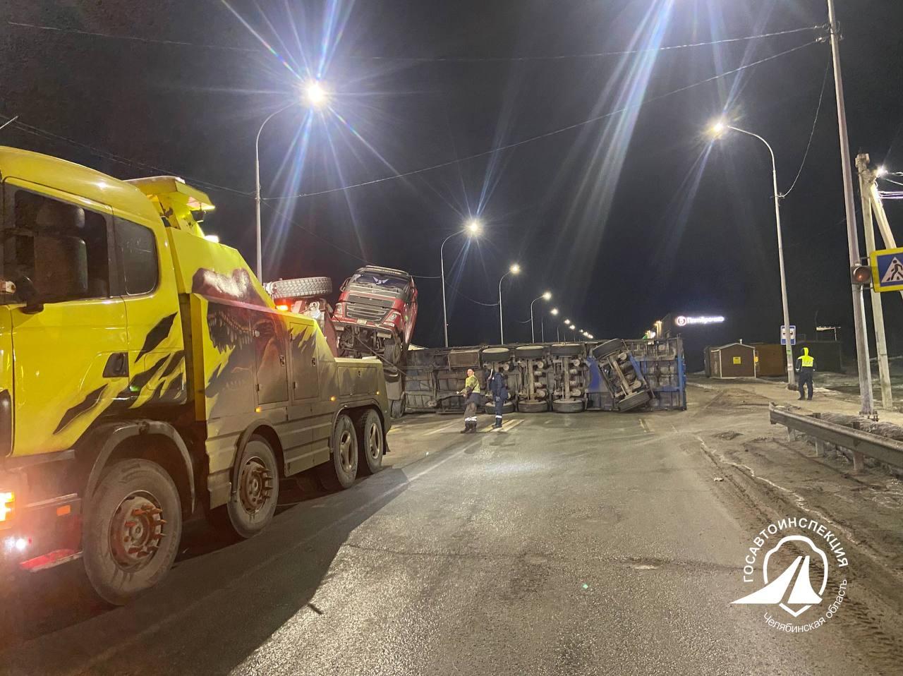 В ГАИ Челябинской области подтвердили, что на 33-м километре этой трассы опрокинулся грузовой автомобиль.