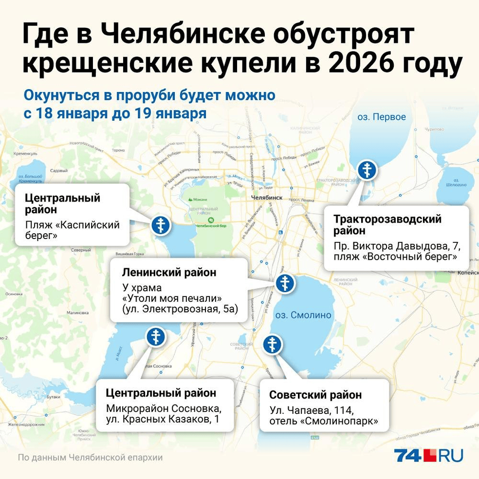 Крещенские купания в Челябинске запланированы на период с 17:00 18 января до 16:00 19 января.