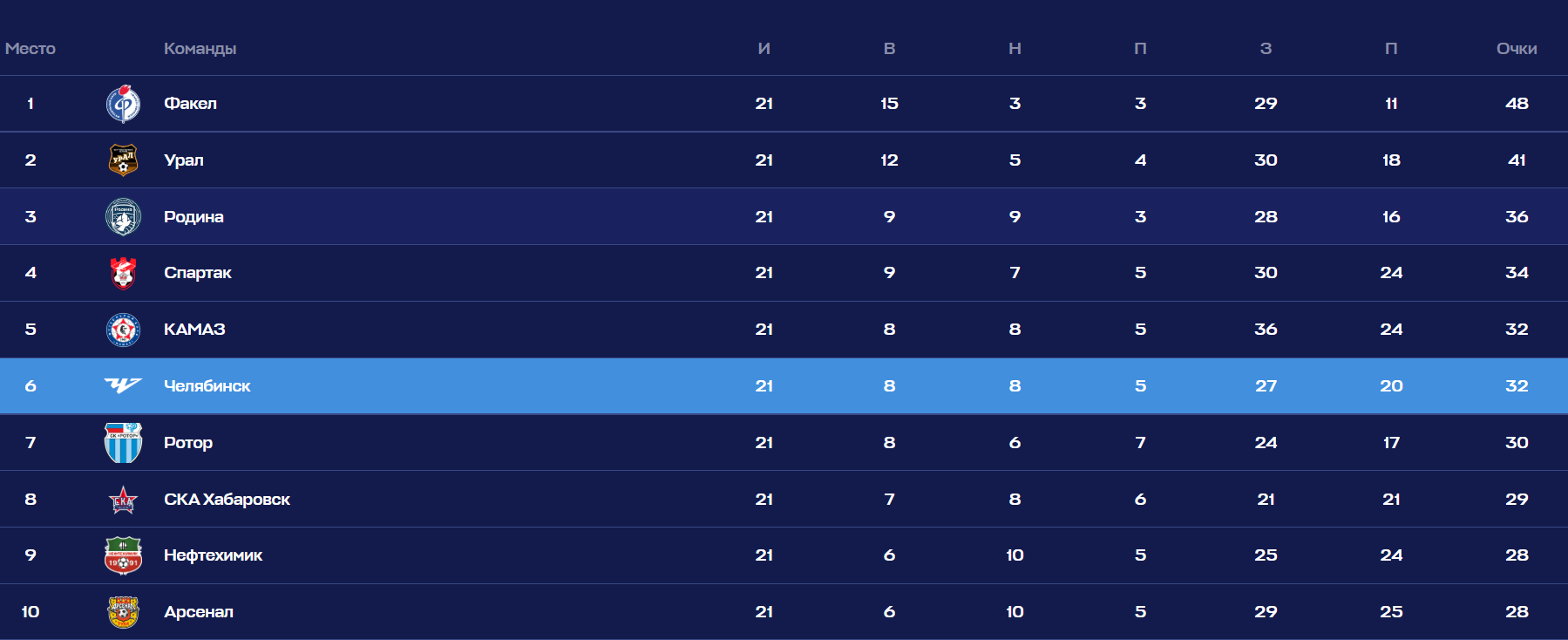 Сейчас Первая лига ушла на зимний перерыв, и матчи возобновятся весной. «Челябинск» занимает шестое место в турнирной таблице, набрав 32 очка. Лидирует воронежский «Факел» с 48 очками.