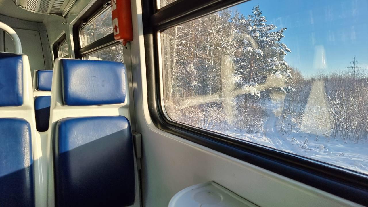 Зимний пейзаж за окном поезда выглядит привлекательнее, когда состав находится в движении.