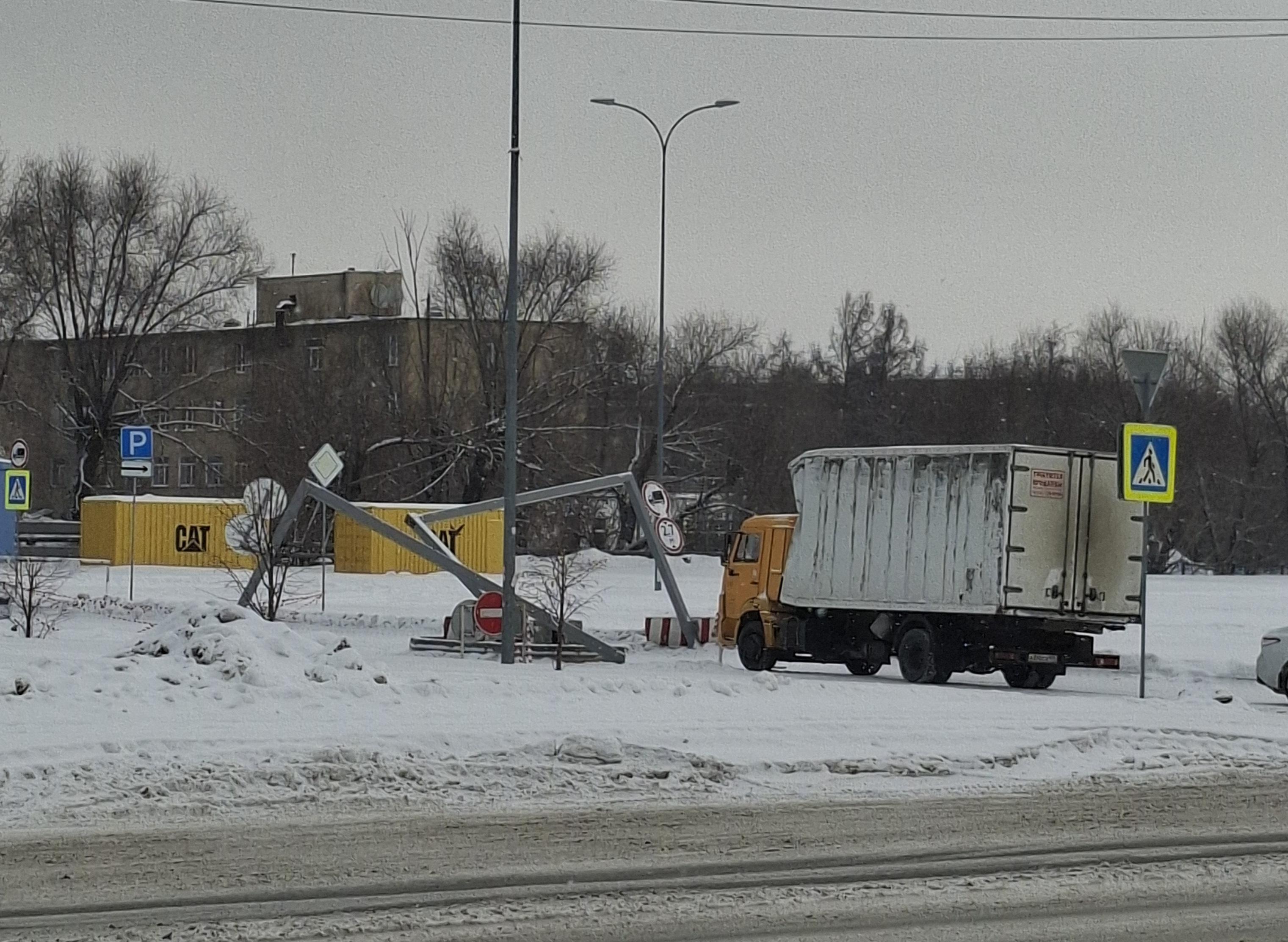 19 января на въезде к торгово-развлекательному комплексу «Алмаз» в Челябинске грузовой автомобиль повредил ограничительную рамку.